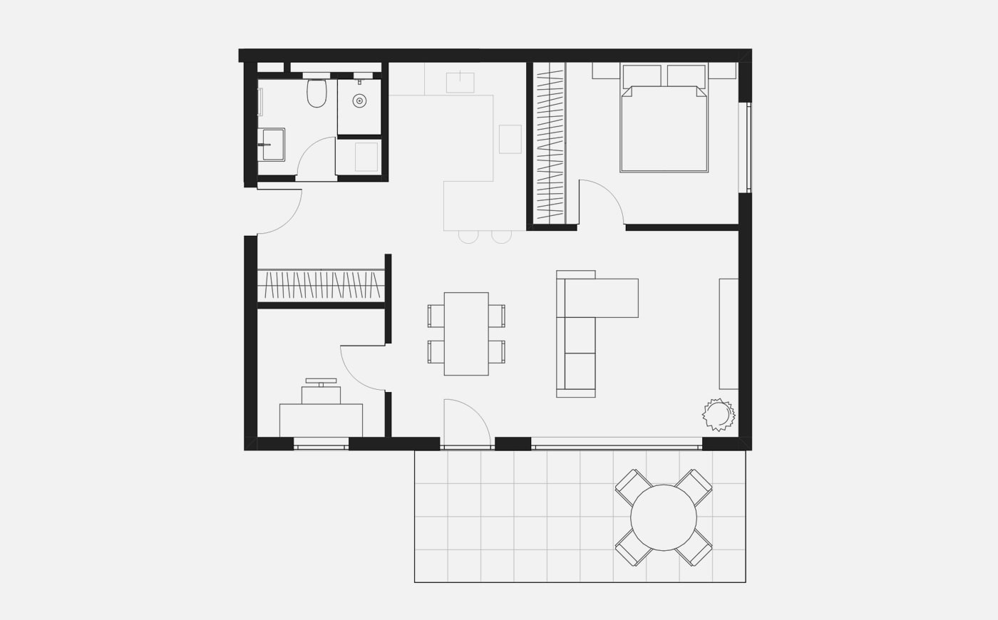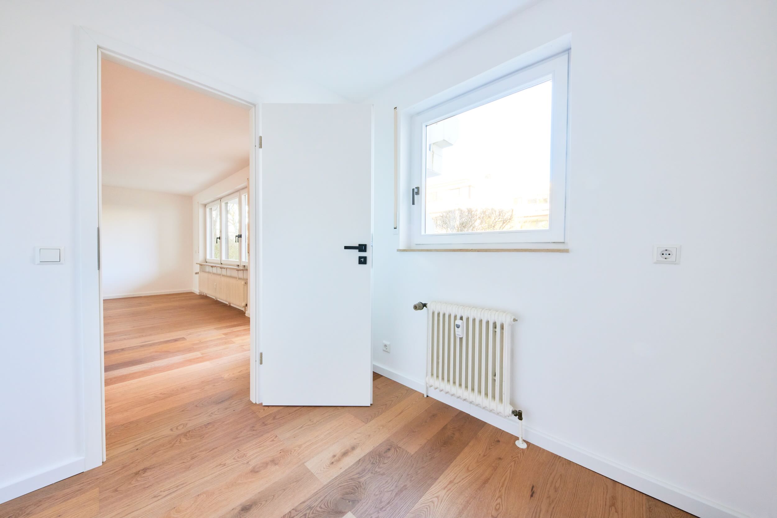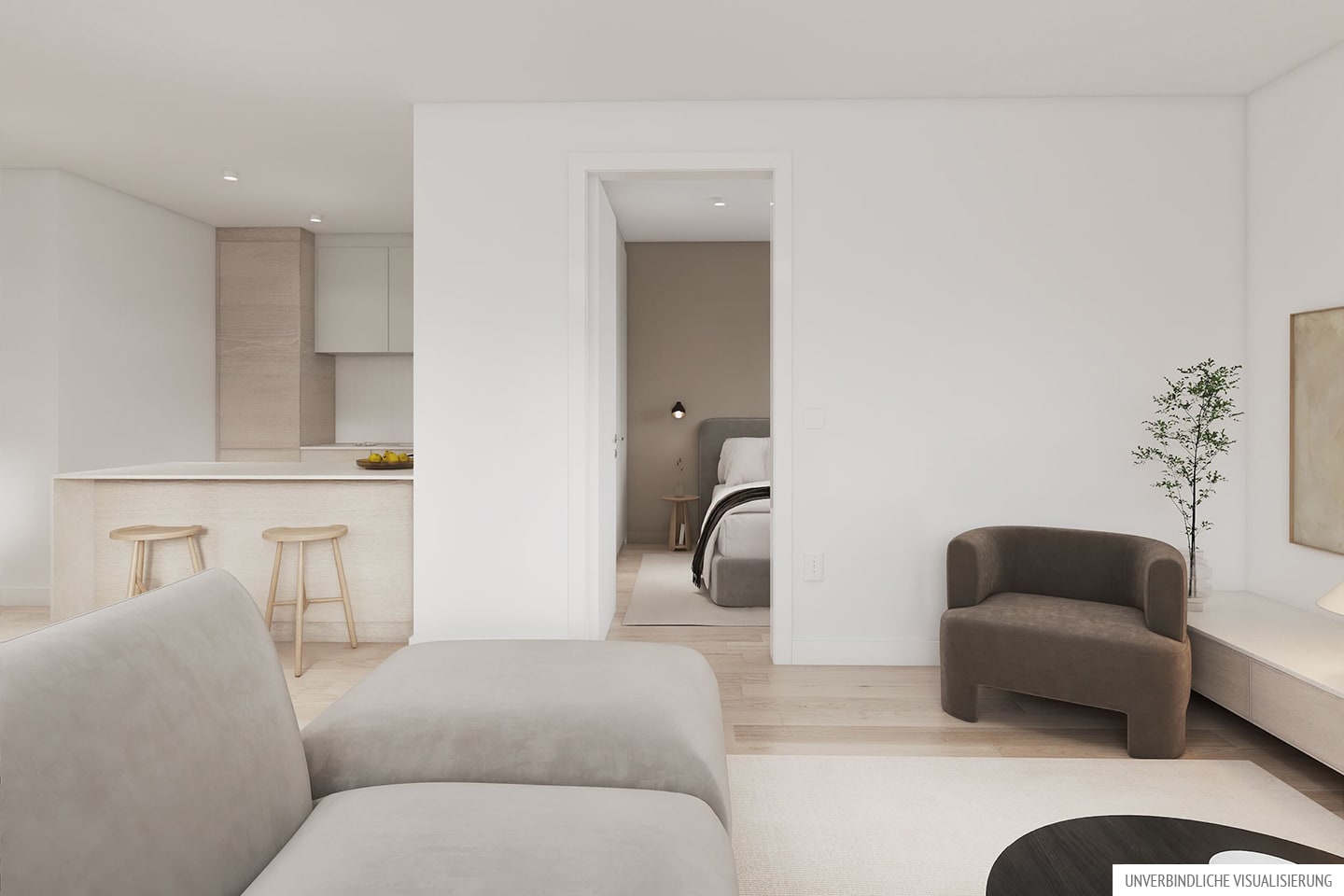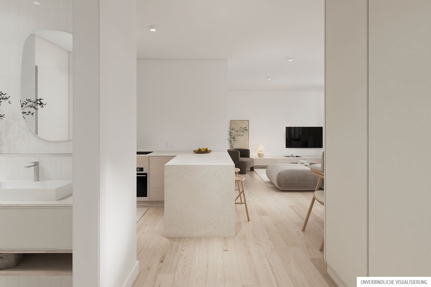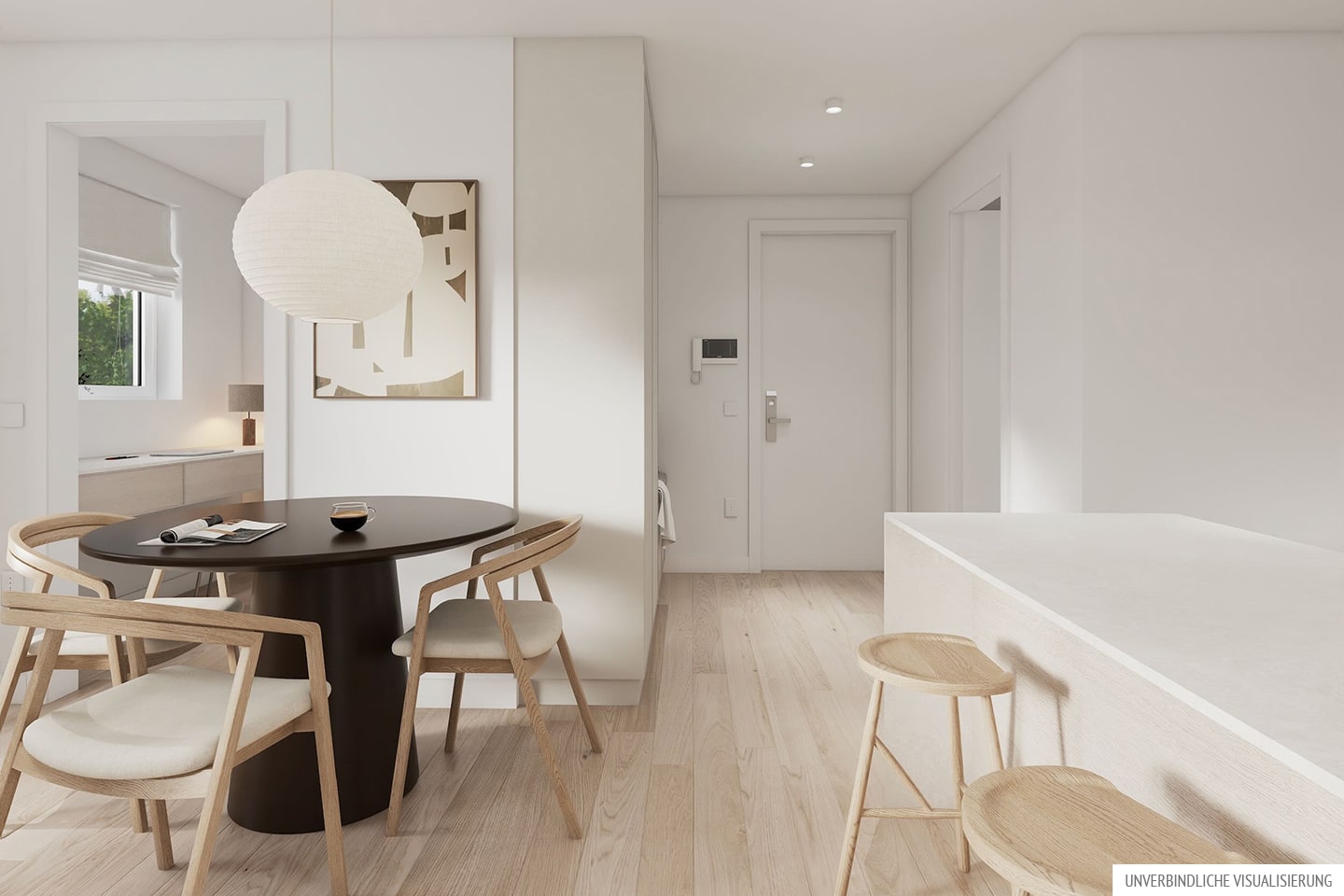 Der Grundriss überzeugt durch eine moderne, durchdachte Aufteilung. Im Mittelpunkt steht der offene Wohn-/Essbereich mit Küche – ein heller, gut möblierbarer Raum, der Kochen, Essen und Wohnen angenehm verbindet und zugleich ein großzügiges Raumgefühl vermittelt. Im Zuge der umfangreichen Renovierung wurde konsequent auf ein zeitgemäßes, hochwertiges Gesamtbild geachtet: Echtholz-Parkett, glatt verputzte Wand- und Deckenflächen sowie ein stimmiges Beleuchtungskonzept schaffen eine klare, ruhige Wohnatmosphäre.