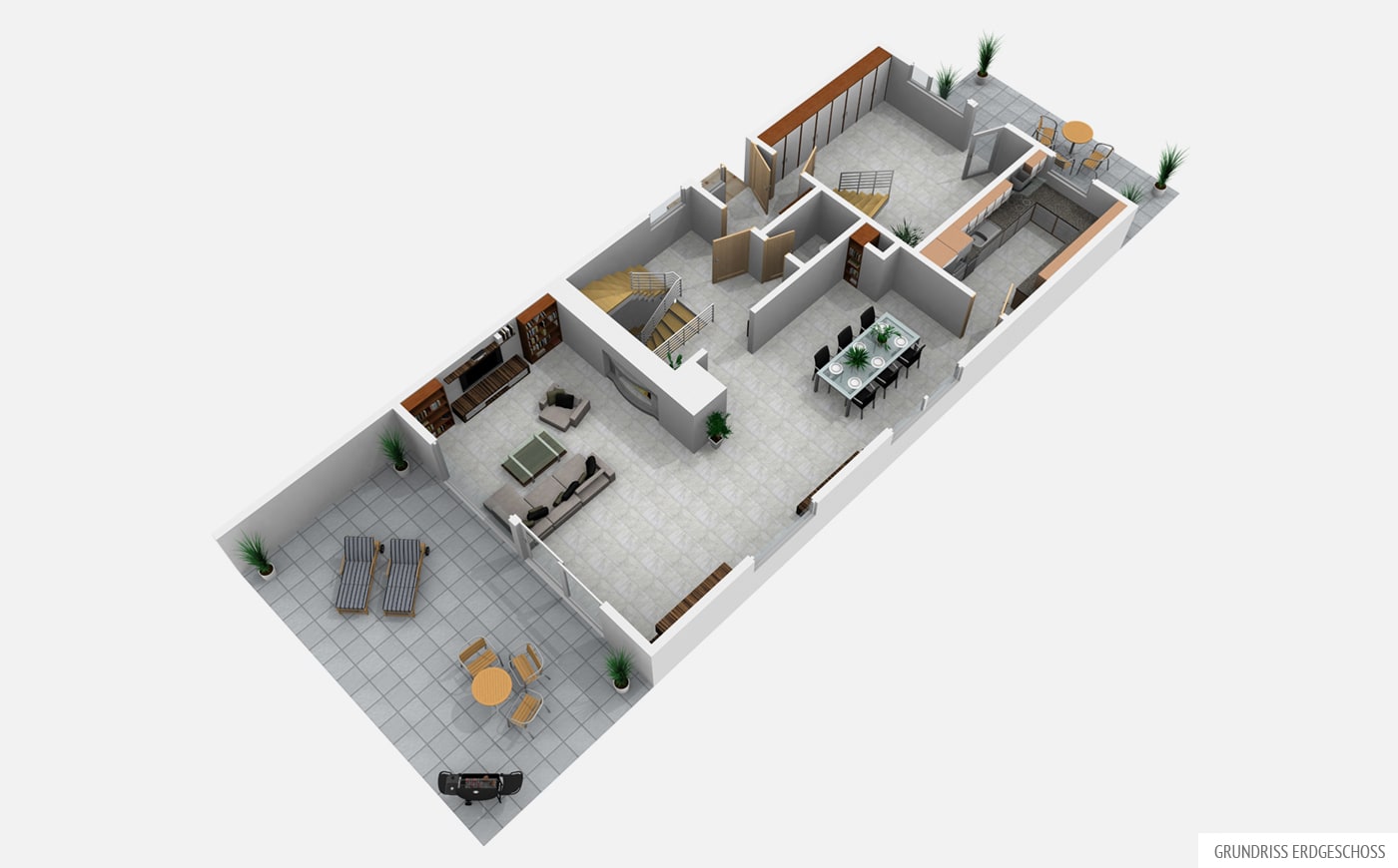 - Erdgeschoss: ca. 93,52 m² – Wohnen/Essen, Vorraum, Küche, WC, Windfang, zwei Terrassen