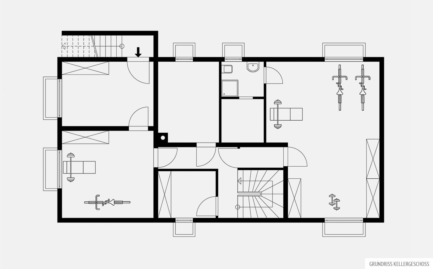 - Gartengeschoss: ca. 42,28 (DIN) m², ein Zimmer, Vorraum, Sanitärbereich mit Dusche, Waschbecken und WC