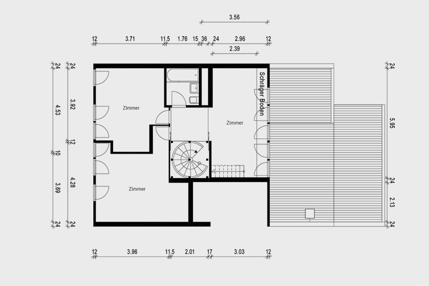 Wohnebene 3 im Dachgeschoss, Wohnfläche ca. 23,37 m²: