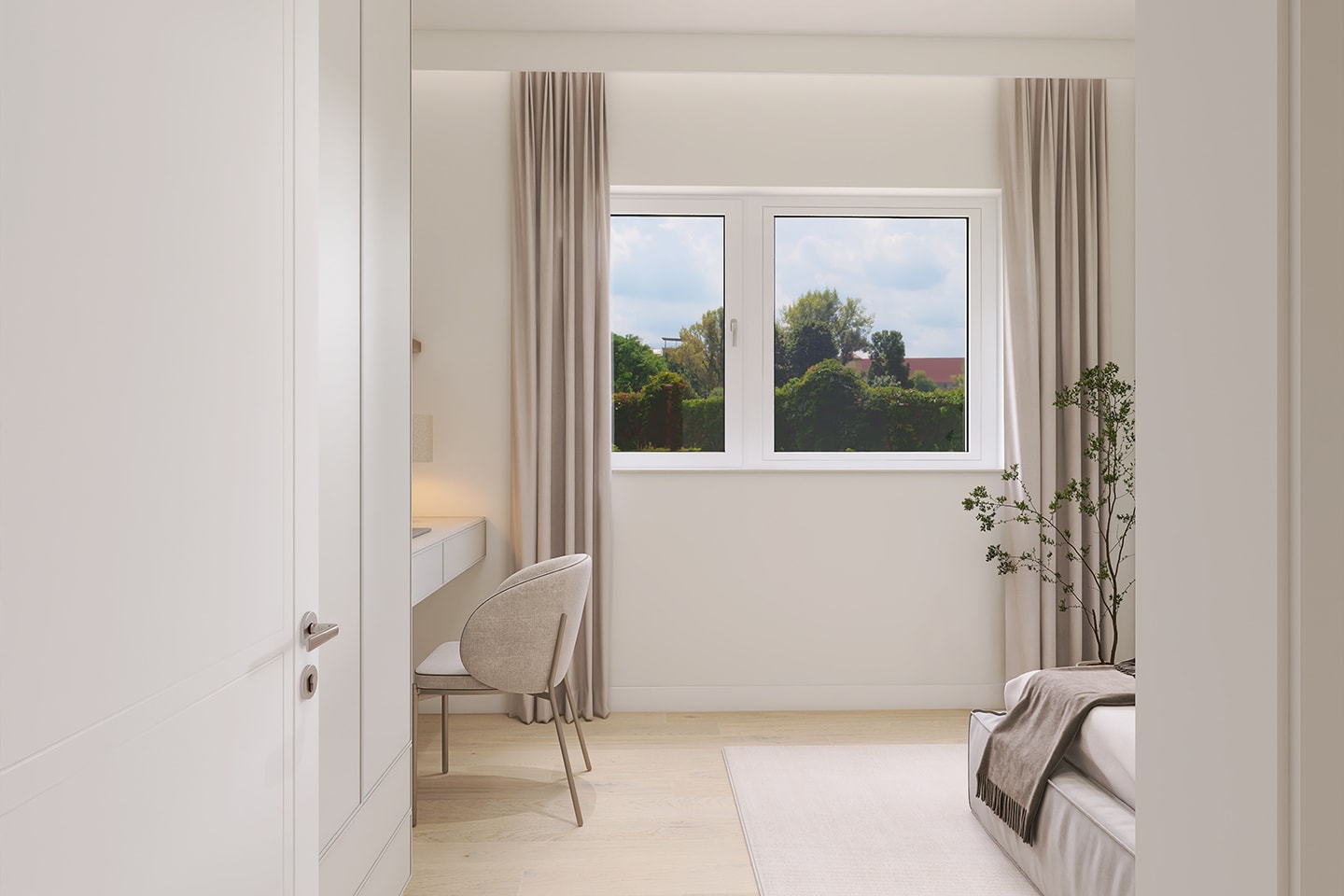 - weiß lackierte Türen und Kunststofffenster mit 3-fach-Verglasung
