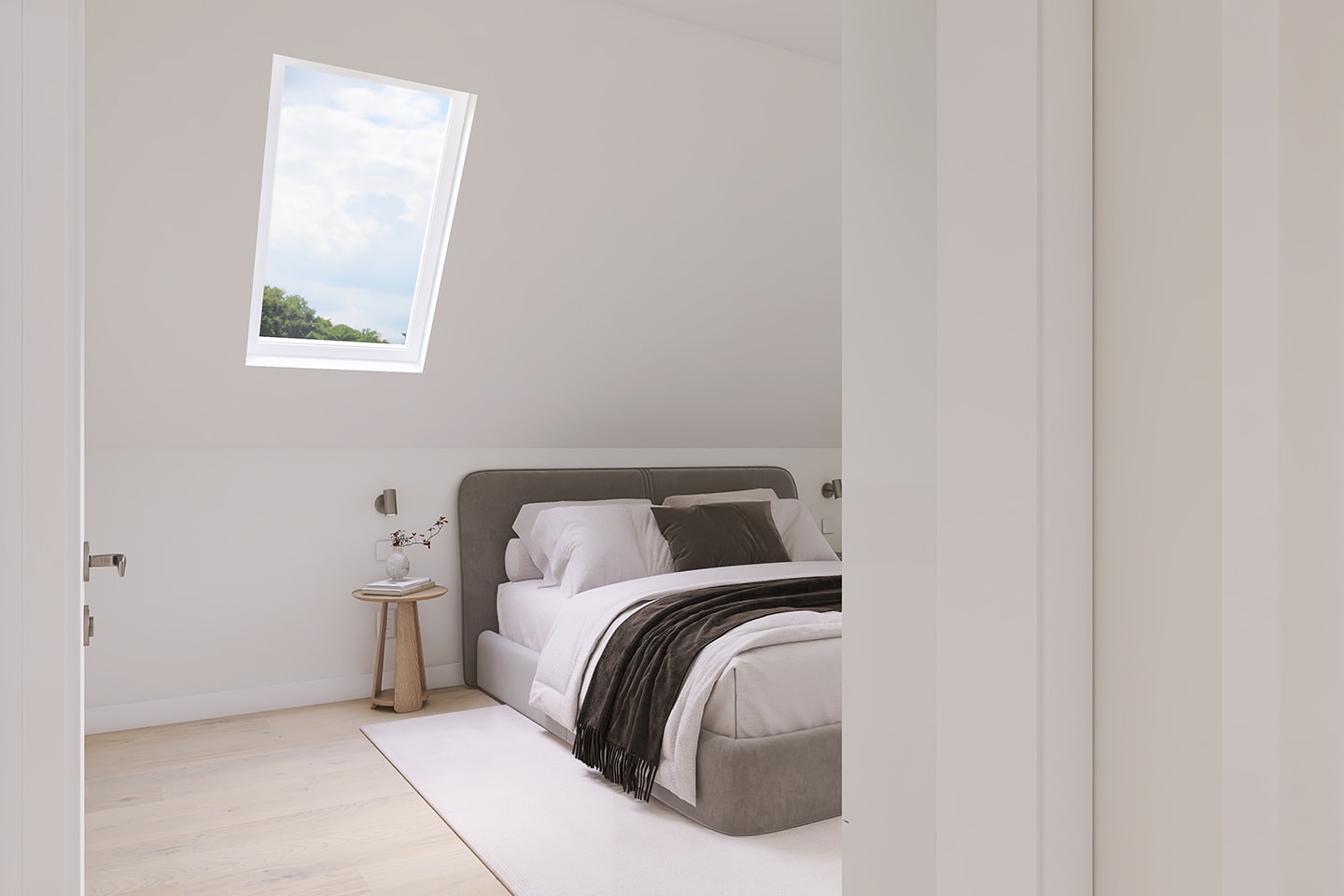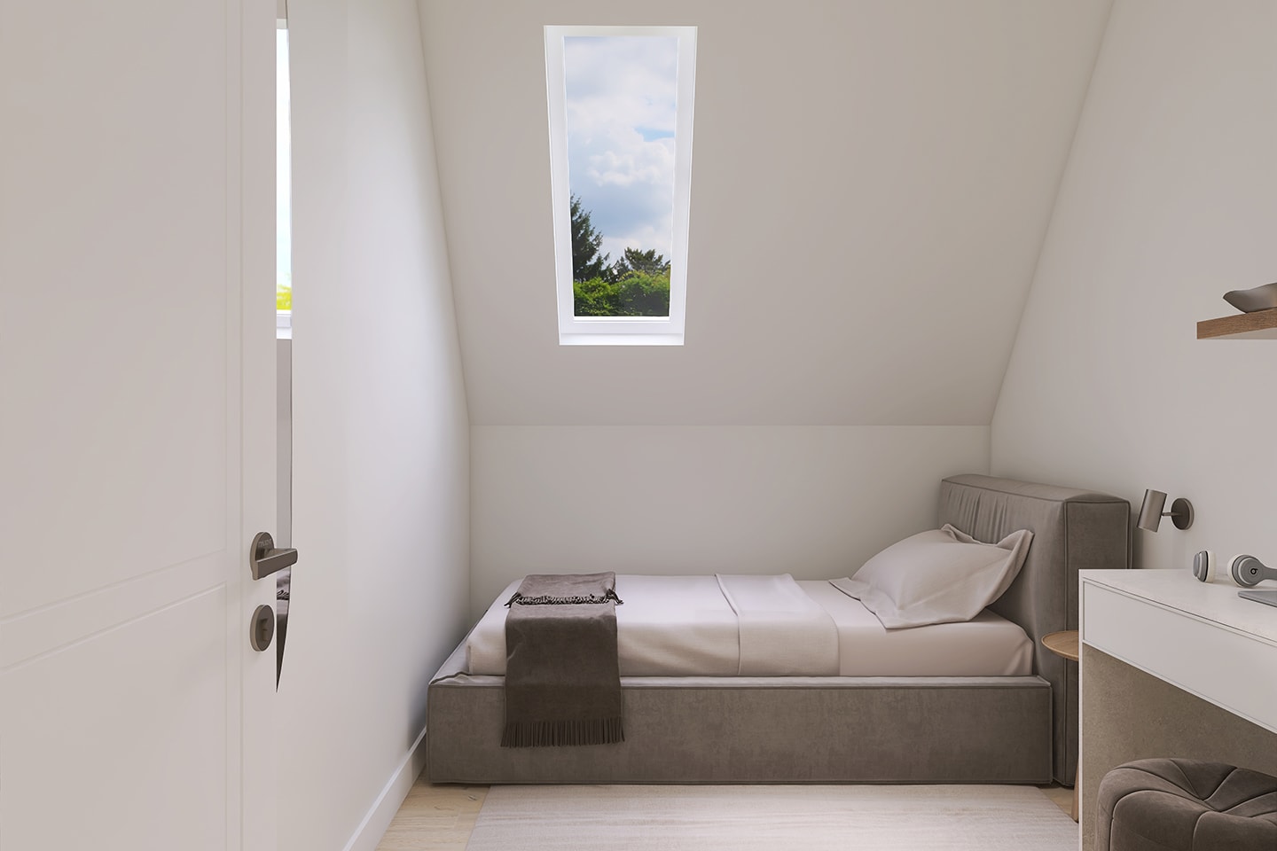 - Weiß lackierte Türen und Kunststofffenster mit 3-fach-Verglasung