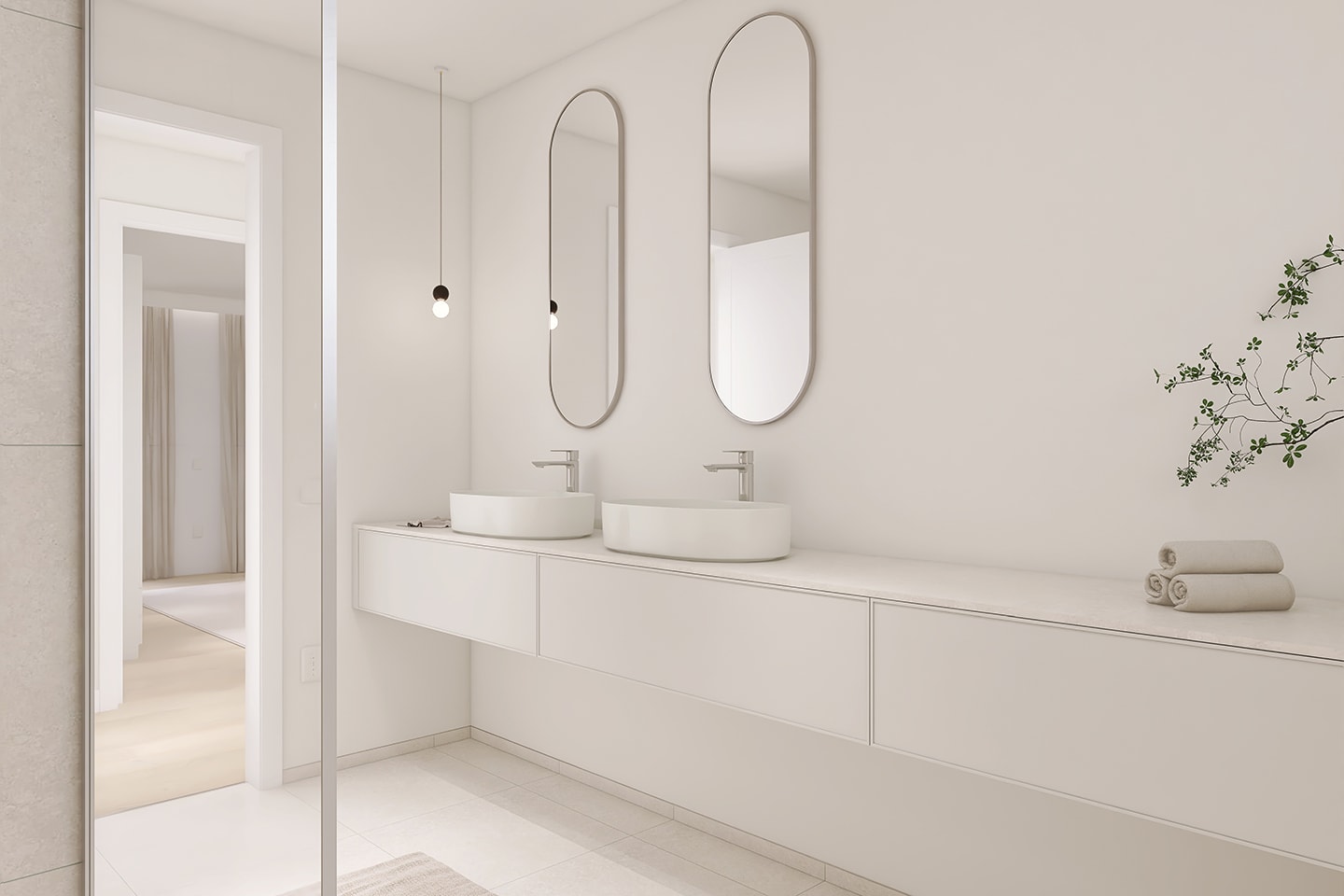 - Tageslichtbad mit Acryl-Duschwanne mit Regendusche, Doppelwaschbecken