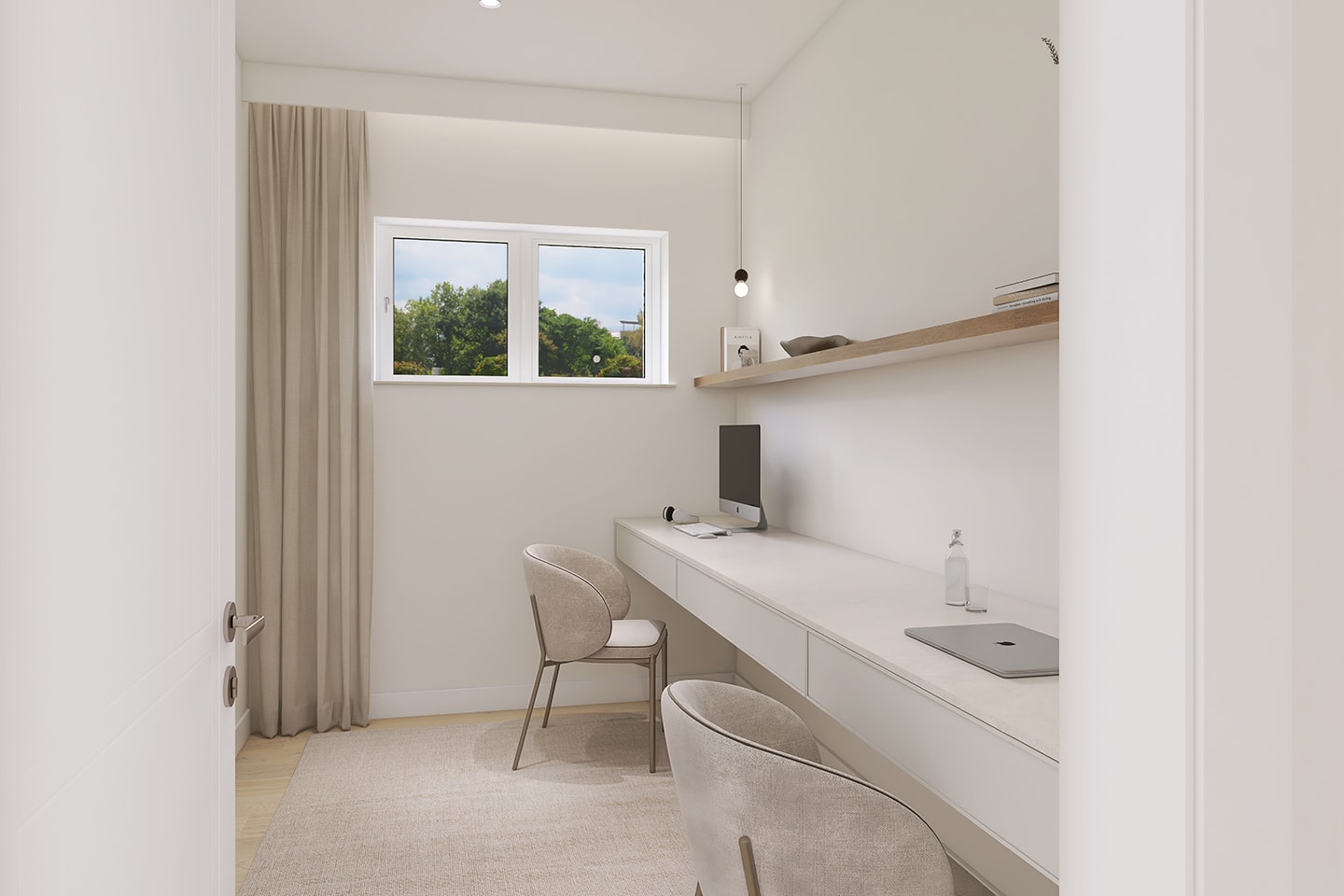 Hochwertige Parkettböden und ein Lichtkonzept verleihen allen Räumen eine warme, wohnliche Atmosphäre, während weiß lackierte Innentüren moderne, helle Akzente setzen. Die neuen Kunststofffenster mit 3-fach-Verglasung sorgen für eine sehr gute Wärmedämmung und schaffen zugleich eine ruhige, geschützte Wohnatmosphäre in Ihrem neuen Zuhause.